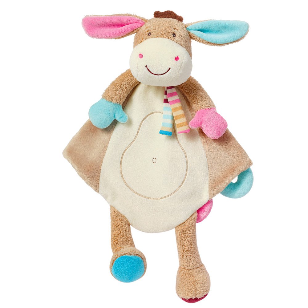 Fehn 081299 Schmusetuch Deluxe Esel – Stofftier-Schnuffeltuch mit Befestigungsring für Schnuller zum Greifen, Fühlen und Liebhaben für Babys und Kleinkinder ab 0+ Monaten