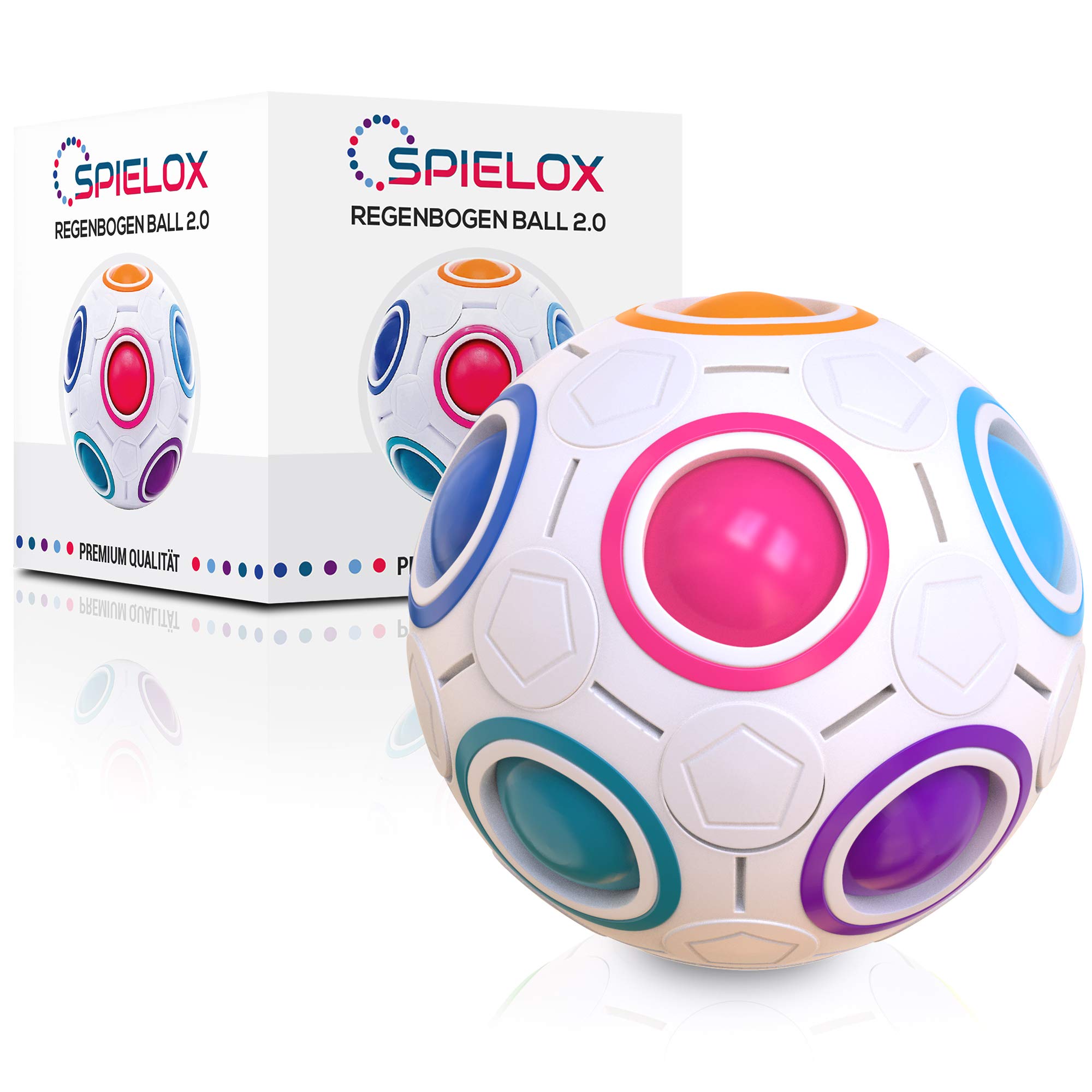 SPIELOX® Regenbogenball - Verbessertes Konzept 2020 - Knobelspiel Stress Ball Geschicklichkeitsspiel Spielzeug für Kinder Erwachsene Geschenk Mädchen Jungen Denkspiele Geschenkideen Kindergeburtstag